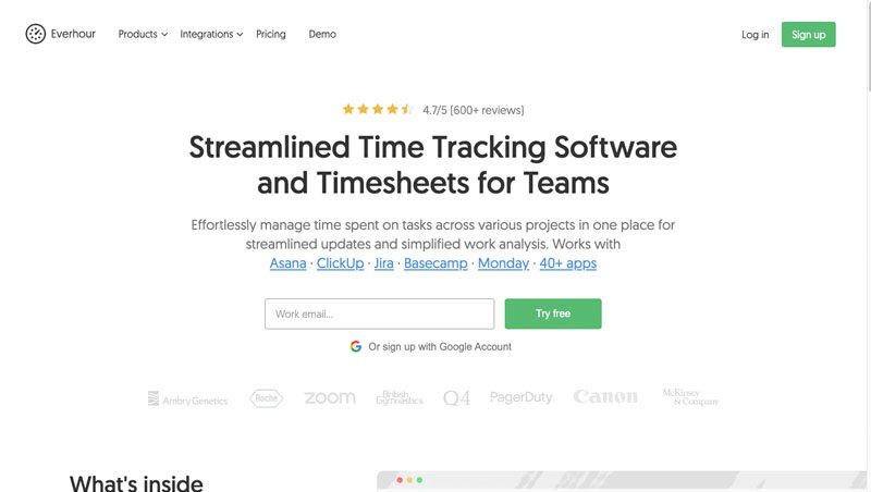 Pricing: Everhour offers a free trial, with pricing starting at $8.50 per user per month for the basic plan, which includes all integrations and reporting features.