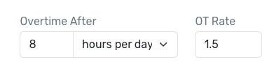 Enabling "Overtime" will allow you to enable the overtime feature. You can set how it's calculated. After so many hours per day and the overtime rate