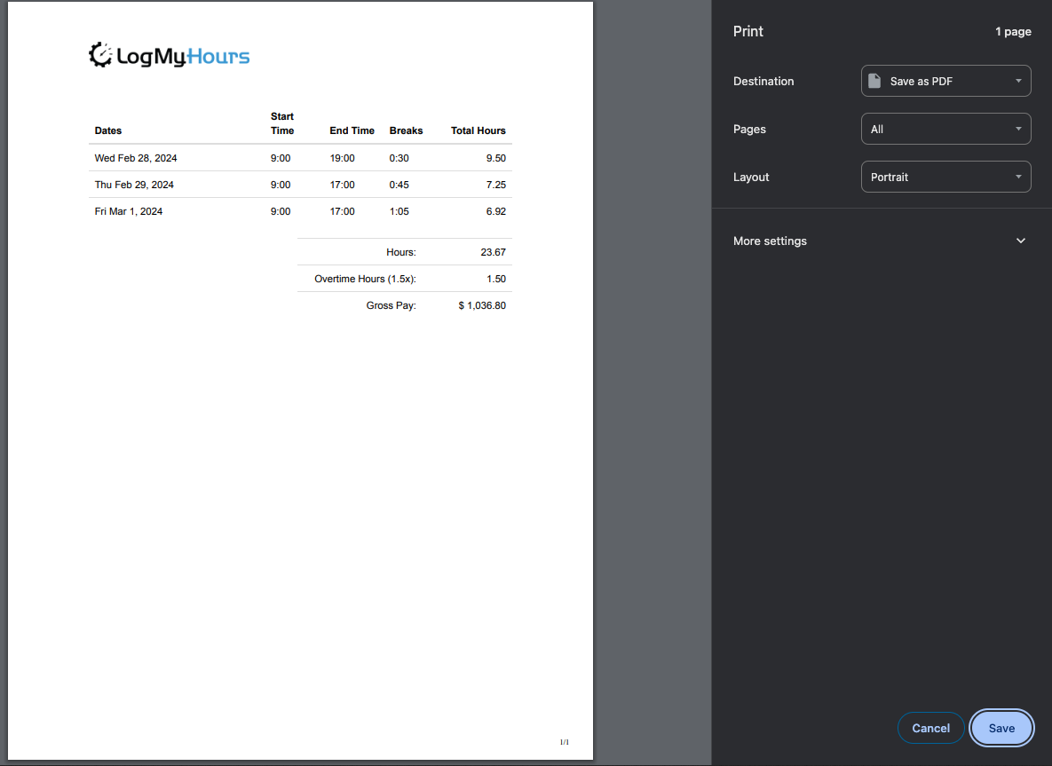 Effortlessly craft invoices in less than a minute by seamlessly importing data directly from your timesheets. Upon completion, swiftly transmit your polished invoices to clients via email, all within Log My Hours.