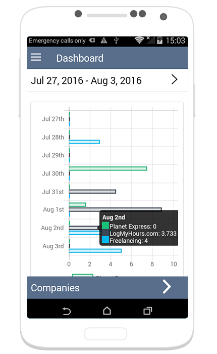 Quick overview of your hours displayed with graphs and breakdowns.