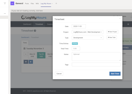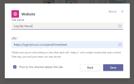 You and your employees can now access their Log My Hours account from the new tab inside of Microsoft Teams