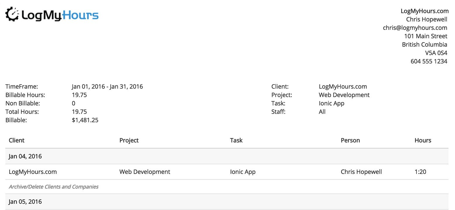 I have been enabled in my efforts to stay productive while searching for more permanent employment. If I didn't have LogMyHours.com, it would be very tedious to report my time promptly and accurately to clients. The straightforward and customizable approach is great for me, and I hope to see expanded functionality going forward.